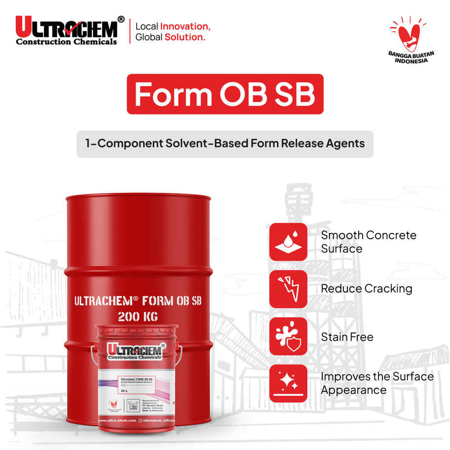Ultrachem Form OB SB is a ready-to-use mold coating material (formwork) made from oil which functions to facilitate the removal of the mold without leaving any concrete residue and is suitable for all types of molds.