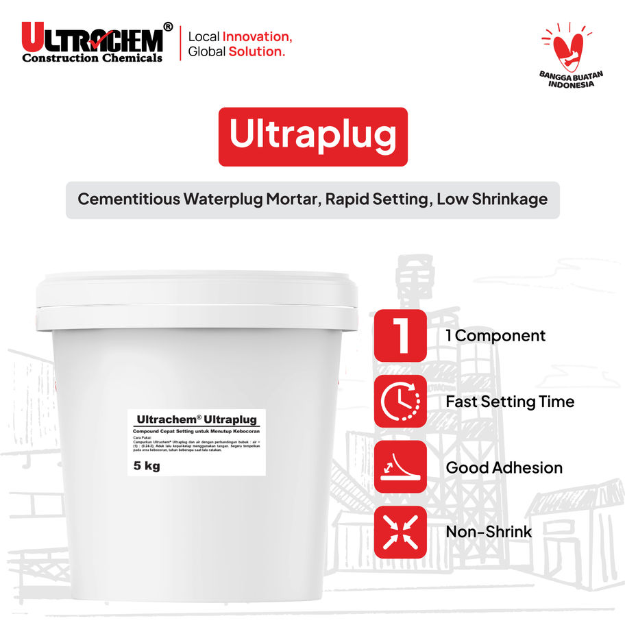 Ultrachem Ultraplug is a ready-to-use cement mortar in powder form with a fast setting rate, chloride-free and has good ability to close cracks and leak gaps.